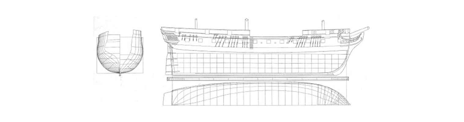 The vessel was designed to house 155 crew with 2 x 9 pounders with 20 carronades on the upper deck, 2 x 6 pounders plus 4 x 18 pounder carronades on the quarterdeck and 2 x 6-pounder (Chase) plus 2 x 24 pounder carronades on the for’castle