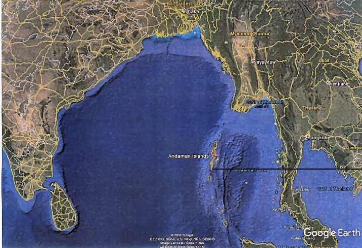 Latitude 10.58N. Longitude 97.57E. Wind SE force 2 becoming southerly force 1. Barometer 29.85 inches. Maximum temperature 87F.