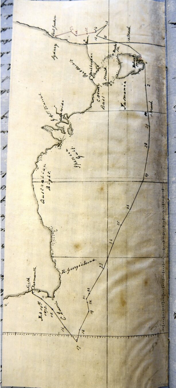 During our passage it will be seen from the above that we had constant northerly, north westerly winds until within a day of Port Jackson when it shifted to southward with a rising barometer. Current generally setting to the south viz two day setting to SW by W 30 miles per day and 4 days setting to the SSE from 15 to 20 miles per day but these were not at all regular for sometimes there would not be any current the next day. We has a strong easterly current for one day abreast of Bass’s Straights. A government pilot boarded vessels of war and consequently we were taken in by one who said that the Western Channel was always used but would give no particular reason for not using the Eastern Channel although we heard from the harbour master that it was a good channel but that they the pilots had an obligation to use it.