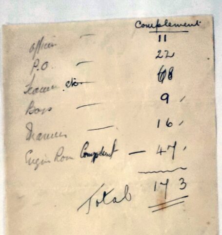 1700. Wind force 2. Quarters. 2000. Wind NW force 2 with overcast sky with squalls and lightning. 2100. Exercised sea boats crew and closing of watertight doors. Coal expended 26 tons 3 cwt. Number on sick list 11.