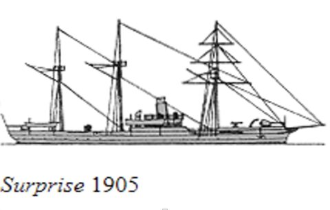 (Ordered under the Naval Defence Act 1889, Iphigenia was laid down in 1891 at the yard of the London and Glasgow Shipbuilding Company. She returned from duty on the China Station in 1906.) Noon. Came to in inner harbour in 3 ½ fathoms with pebble bottom. Secured stern to number 2 buoy. Coal lighters came alongside. 1330 Coaling ship. 1430. Knocked off coaling. Received 246 tons. Watered ship. Preparing for sea. 1600. Shortened in. 1630. Weighed. Proceeded as required for turning outwards.1650. Course S74W at 70 revolutions- 5.2 knots. 1712. 78 revolutions. 1720 S74W. Put P log over. 1745. 95 revolutions. Mustered at Quarters. 1753. 112 revolutions. 1805. 122 revolutions – 14. Knots. 2115. Altered course to S72W. Exercised seaboat’s crews. Close watertight doors. 2200. Altered course as required through Peruin Small Strait. Coal expended 27 tons 10 cwt. Number on sick list 4.