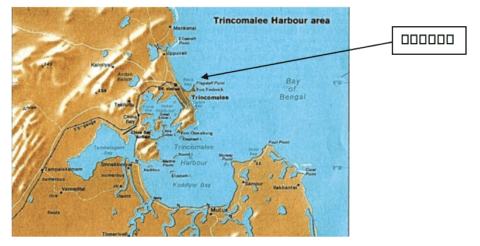 At single anchor in Trincomalee Harbour. Wind SW force 2 to 5 with broken cloud. Barometer 29.89 inches rising to 29.97 at noon and remaining steady until midnight. Temperature at noon 88F. 0600. Received 116 lbs of fresh beef and 58 lbs of vegetables plus 238 lbs of bread. Draught 14 feet 6 inches forward. 16 feet. Aft. 0600. Shortened in. Lit fires in cutter.0700. Weighed stream anchor. 0730. Took Prize firing target and cutter in tow. Weighed and proceeded as requisite for Back Bay.