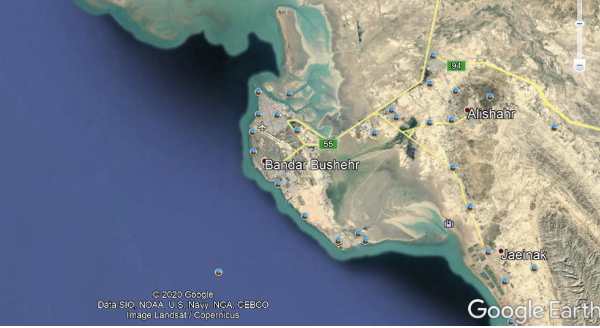 At sea. Bushire to Bandar Abbas.
