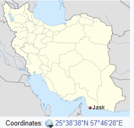 At sea. Muscat to Jask. Course N20W at 7 knots with smooth sea. Wind NW force 1 to 2 with blue sky. Barometer 30.00 9inches rising to 30.08 at 0800 and to 30.10 at noon before falling to 30.07 at 1600 and to 30.06 at 2000 before finishing at 30.08 inches at midnight. Temperature at noon 89F. 0500. Cleaning ship. Tested life buoys. 0800. Exercised Fire Stations. 100. Cleaning ship. Noon. Position 25.17N 57.49E. Wind calm. 1215. Altered course to N13W. Employed as requisite. 1600. Stopped. Came to in 3 ¾ fathoms off Jask and veered to 1 ½ shackles. Anchor bearings. Telegraph House S28E. Black Beacon S84E. 1800. Distilling. Coal expended 12 tons 18 cwt. Number on sick list 12.