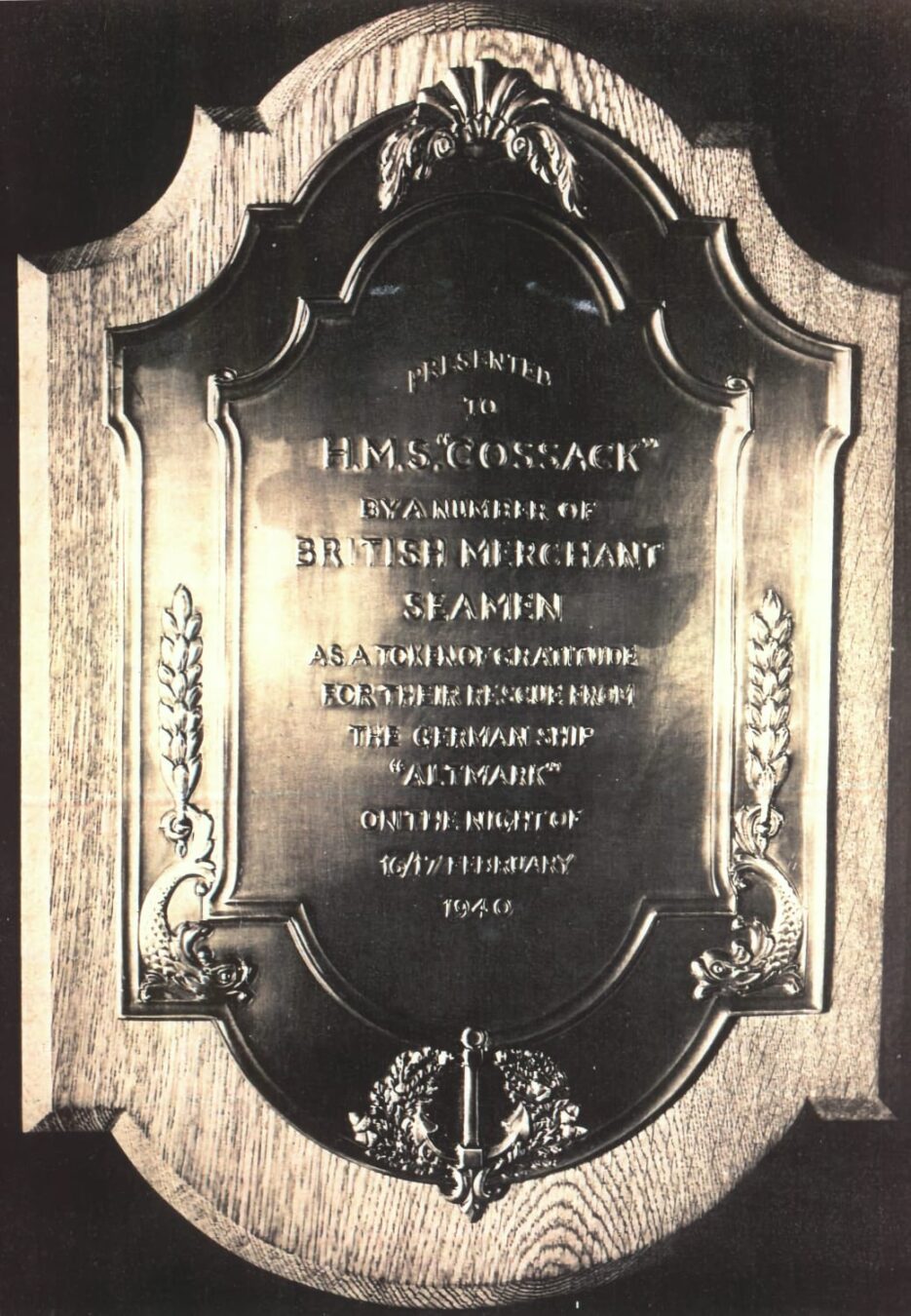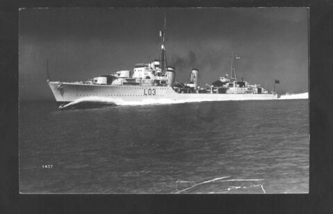 During the 2nd WW the ship was adopted by Beckenham, Kent. As the sister of Lt Cmdr P Vian (Later Admiral) – Marian Vian had a school in Beckenham named after her. Reg Morrison passed the 11 plus whilst attending in 1942. A plaque marking the adoption was put up in the town hall. This building was demolished in 1991 to make way for a supermarket. The area is now under the London Borough of Bromley.