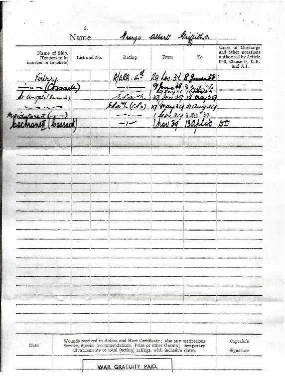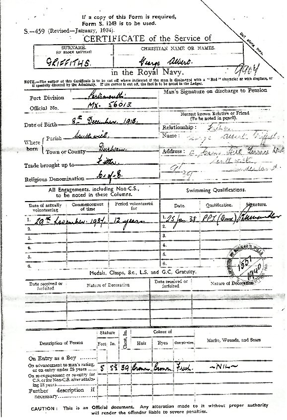 "Certificate of Service of GA Griffiths in the Royal Navy"