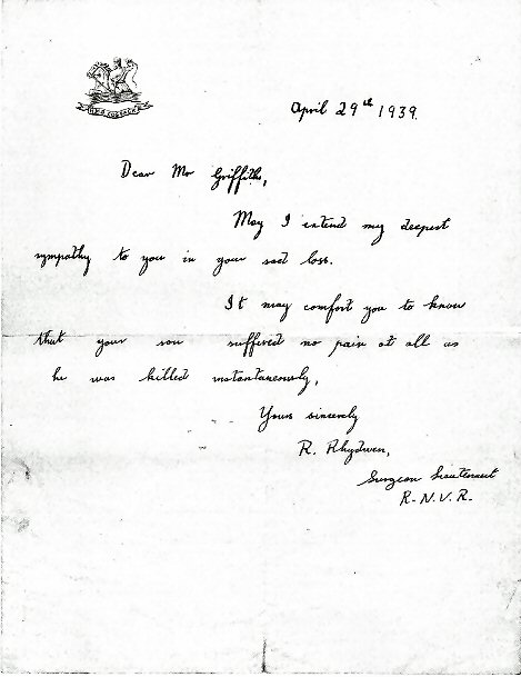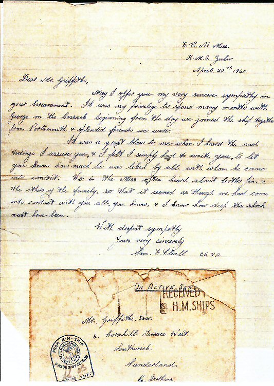 - from Sam Cleall CERA (at that time serving in HMS Zulu, dated 20/04/1940)