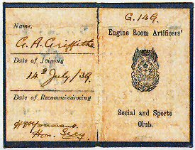 Membership card for the ERA's Sports & Social Club in Malta dated 14/07/1939