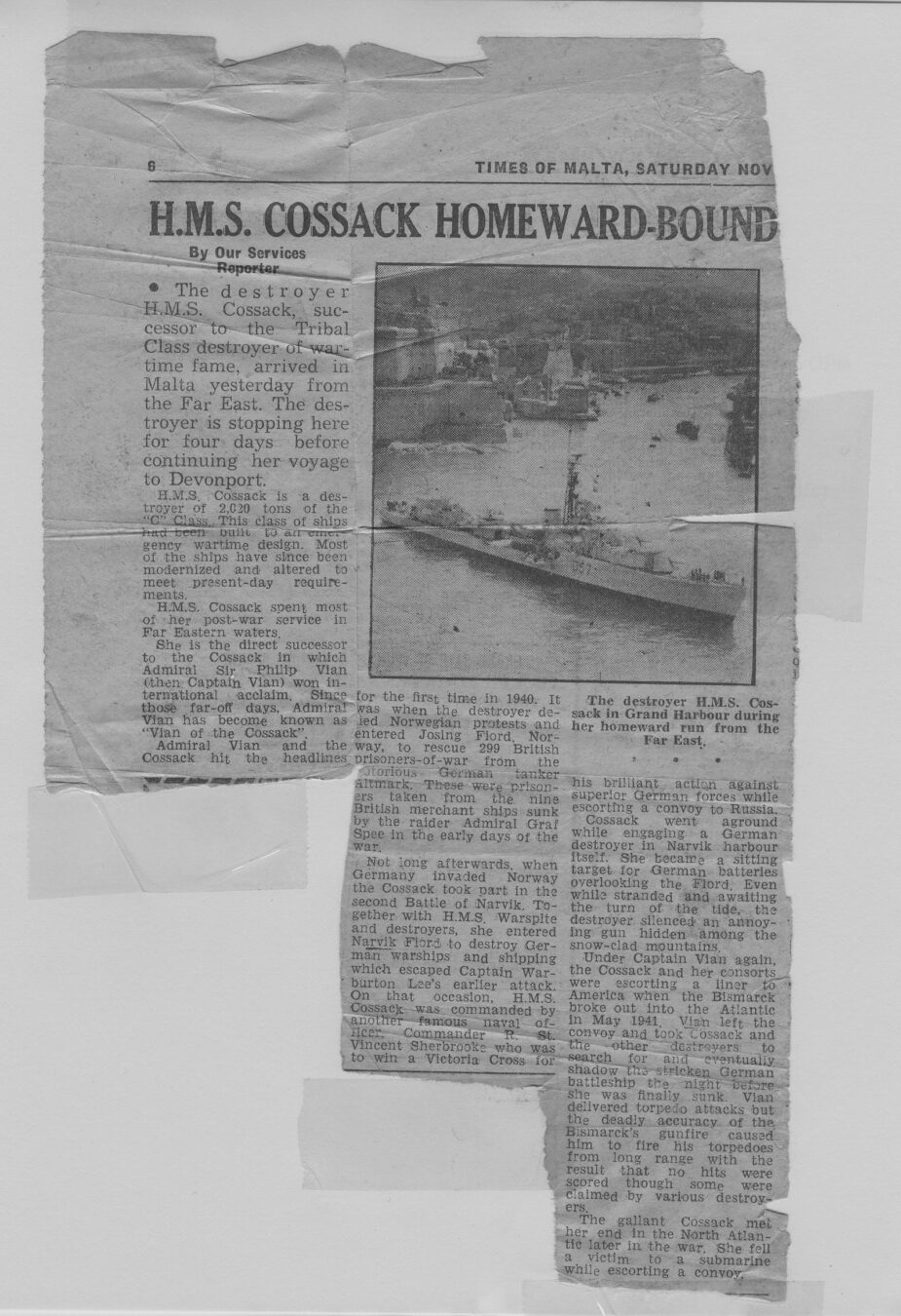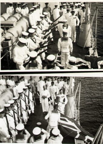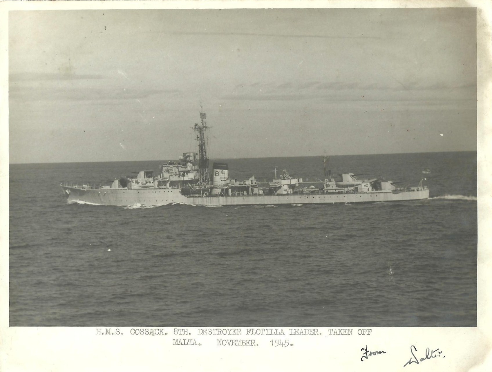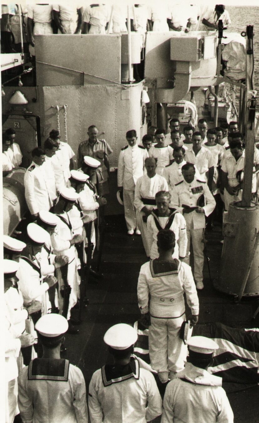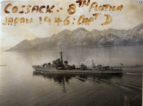 Scuttlebut has it that both of these things occurred later in 1945 when the ship was in the Far East. The war in Europe had ended before COSSACK left the UK. The war with Japan had ended at the beginning of September 1945 and by the time that COSSACK arrived on the Far East Station some demobilisation had begun back in the UK. For many “hostilities only” personnel, both officers and men, this was a sore point. There they were, far from home and, for many, after a long and arduous war, they had to sit it out and wait for reliefs to be organised and trooped out to take their places.