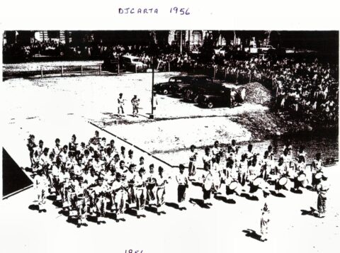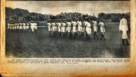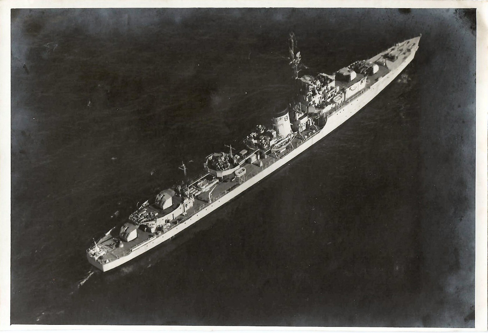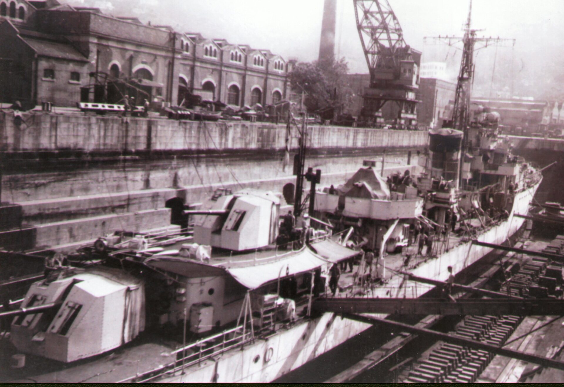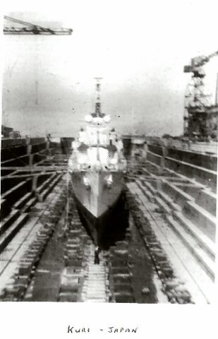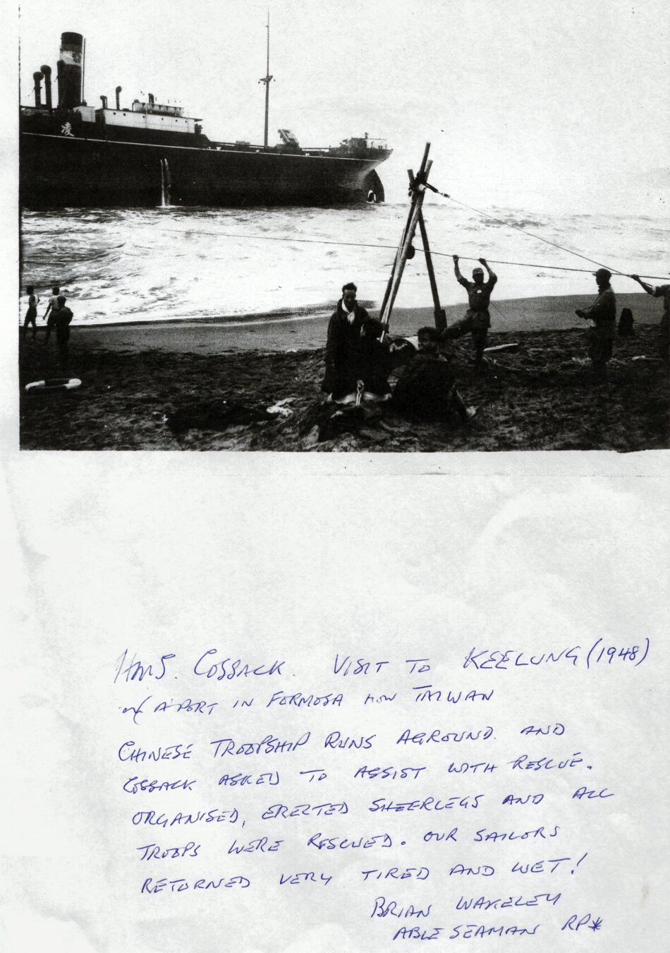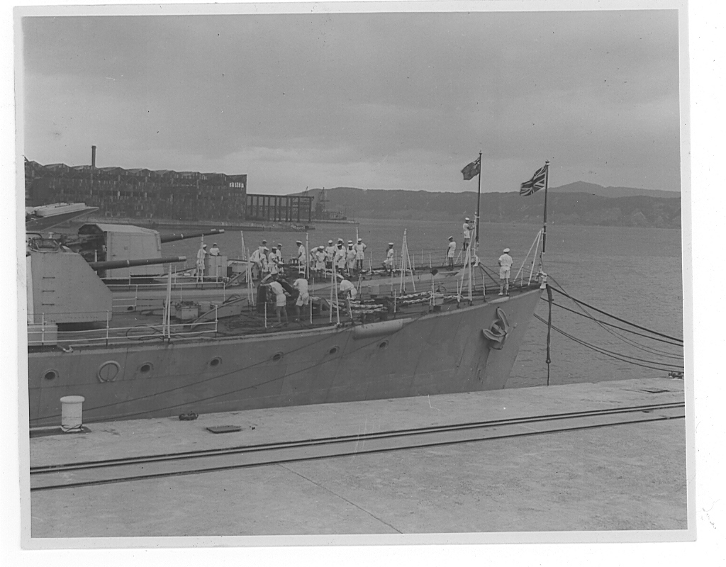I later asked some of the officers who had been aboard during that first commission about it. The story I got was that when the ship commissioned the smock was white and remained so until just after the war with Japan ended. Demobilisation had started back in UK and with troops returning from Europe. Those in the Far East were told that there would be some delay until reliefs could be organised and sent out. This caused some unrest and a group of junior officers decided to make a protest. During one night alongside the ship’s badge was repainted, red to reflect revolution and the Red Army. The Captain, although he said that they were searching for the culprit, secretly liked the badge in its new colour and no action was taken to revert it to the original colour. As we know, it remained that way until Cossack finally paid off.
