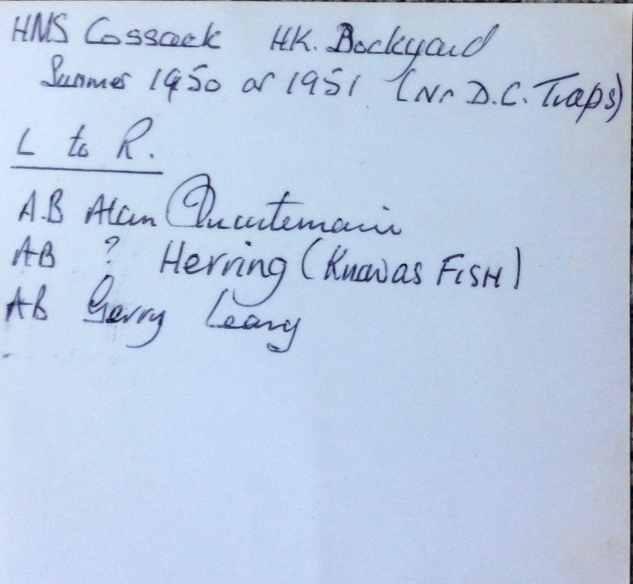 Yours aye – Peter Harrison Lt RN.